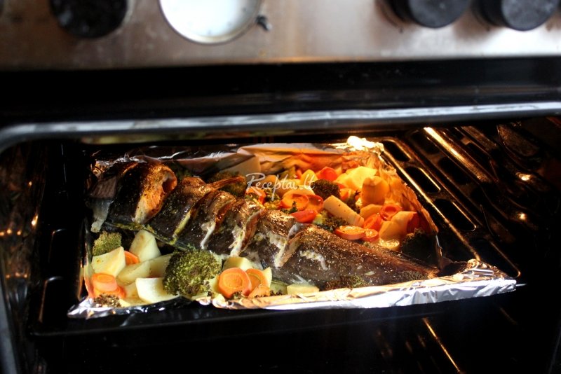 Keptas afrikinio šamo kepsnys su daržovėmis orkaitėje